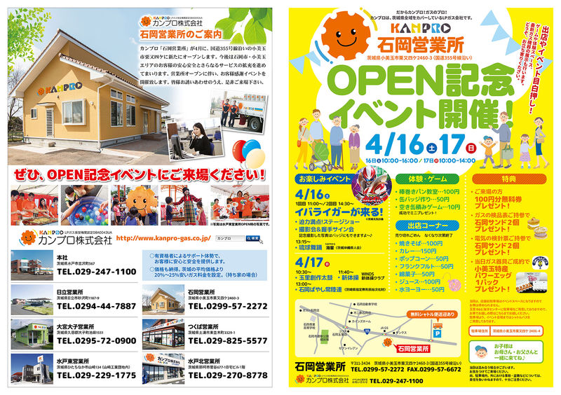 4月16日・17日は、石岡営業所(小美玉市栗又四ケ2640-3)にて、石岡営業所OPEN記念イベントを開催します。